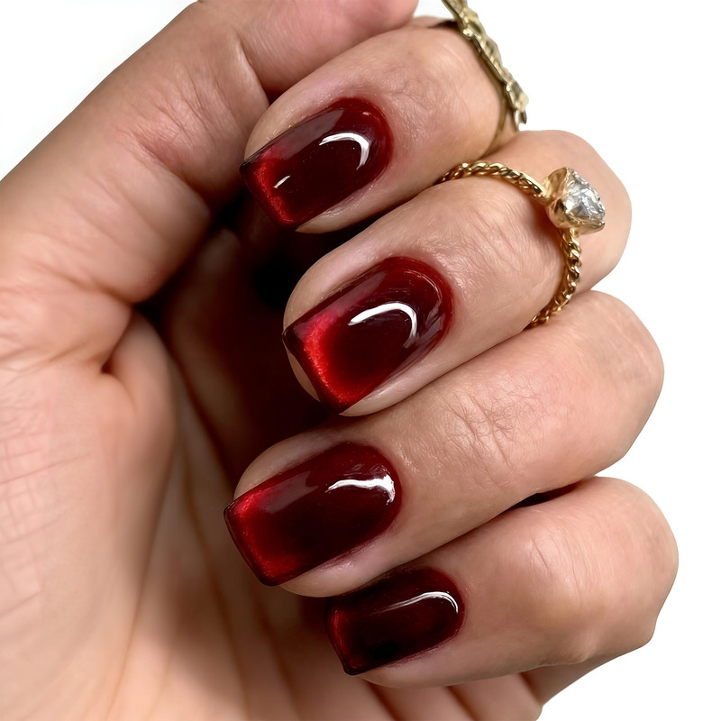 Scarlet Red Cat Eye Gel Press-On Nails Set