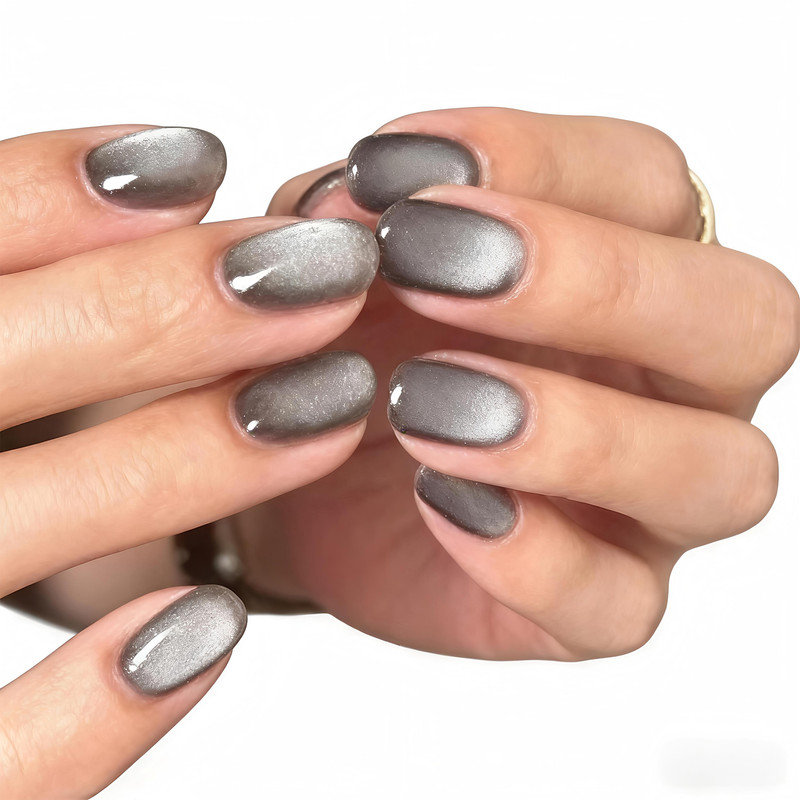 Silver Gray Cat Eye Gel Press-On Nails Set
