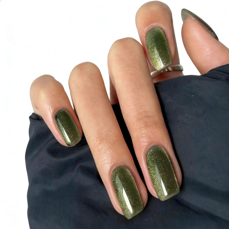 Deep Green Cat Eye Gel Press-On Nails Set