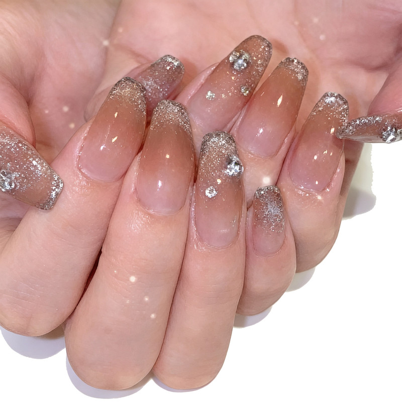 Light Pink Rhinestones Cat Eye Gel Press-On Nails Set