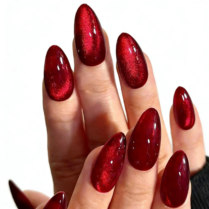 Almond Red Cat Eye Gel Press-On Nails Set